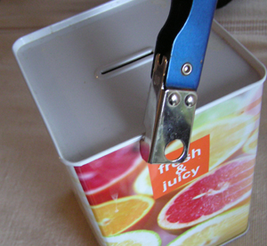 JUGEMテーマ:移動販売 Q 5年間、一生懸命ではなく 本当に気が付いたときにぼちぼちと 500円玉を貯めると… いったいいくらくらいになるのでしょうか!? さてさて、いよいよ缶を切りますよー。 (家族が注目。一部悲鳴〜) 開いたところから中を見ると… 意外と少ないです・・・ 半分くらい…と思っていましたが・・・ 3分の1…といったところでしょうか… 束ねてみましょう… 正解は・・・83000円でした。 何度数えなおしてみても、83000円でした。。。