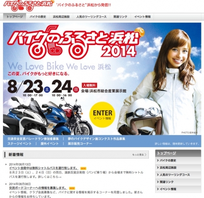 JUGEMテーマ:ガレージ・カーポート 今週末の23日、24日に静岡県浜松市、総合産業展示館にて、バイクのふるさと2014 が開催されます。 トークショーや、ステージイベント、各メーカー新車展示、トライアルデモストレーション、親子バイクスクール等、 盛りだくさんのイベントで、一日中楽しめる事、間違いなしのイベントでございます。 名古屋からですと、ちょうど良い日帰りツーリング距離で、気軽に行けるイベントです。 入場無料のこのイベント、バイク乗りならば参加しましょう!!