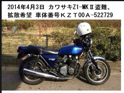 JUGEMテーマ:ガレージ・カーポート 盗難情報 KZ1000 Mk2 【以下コピペ】 《拡散願います》昨日クラブのメンバーのバイクが盗難されました。車種はカワサキのZ1-MK?で外観の特徴としてインシュレーターがタイラップで留めてあります。 車体番号KZT00A-522729 打刻も怪しいものがありましたら情報よろしくお願いします。 皆様の拡散、ご協力宜しくお願い致します。