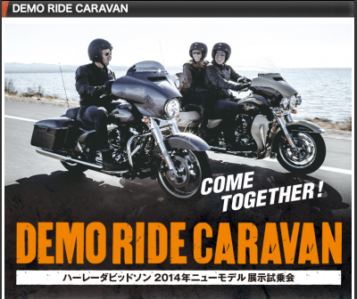 JUGEMテーマ:ガレージ・カーポート 今年も、ハーレーデモライドキャラバンが、名古屋にやってきます!! 本年は、開催場所が変更され、サンビーチ日光川にて開催されます。 開催日は、3月1〜2日までの二日間でございます。 最新の2014ハーレーを、一気乗り出来る毎年大人気のイベントでございます。 ハーレーの購入を検討なされておられる方は、行って損の無いイベントです!! 消費税増税前に購入するラストチャンスを、逃さないように今から準備しておきましょう!! 普通自動2輪免許でも、特設コースで体験走行が出来るの...