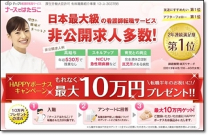 看護師求人カングー多数掲載 看護師求人カングーでも多数掲載中、実際に利用した方に人気の看護師求人サイトです。 多くの方は、看護師転職支援サイトに2,3サイト登録して、より好条件の職場を見つけて転職に成功しています。 そのなかでもおすすめの求人サイトが、ナースではたらこです。 ナースではたらこは、マザーズ上場会社のディップ株式会社が運営する看護師専門の求人サイトで利用者の満足度が高い事で評判です。 看護師人材紹介会社顧客満足度No.1 ナースではたらこ その特徴として、丁寧な転職サポ...