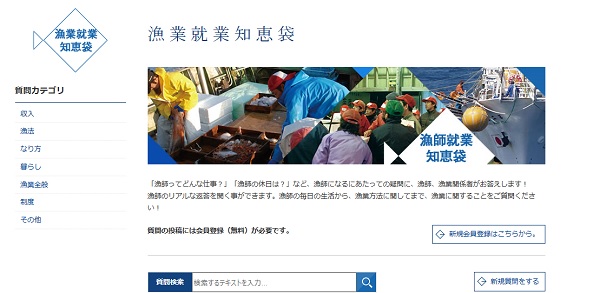 今日は皆さんに情報提供したいと思います。 「漁業就業知恵袋」ってご存知でしょうか? (一社)全国漁業就業者確保育成センターが運営する「漁師.JP」(http://www.ryoushi.jp)というホームページで 生まれた新コーナーです。 (一社)全国漁業就業者確保育成センターは 東京、大阪、福岡などで開催される「漁業就業支援フェア」の主催者で 多くの皆さんが漁業に目を向けてくれるような、就業しやすくできるような体制を整えてくれるところです。 疑問点は漁業就業支援フェアに参加して直接漁業者さんに伺うのが最良...