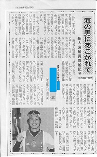 大変申し訳ありません。 三陸新報に連載されております「海の男にあこがれて11」の紹介が遅れておりました。 今回は1月20日に掲載されたものでございます。 今回紹介しますのは 青森県八戸市出身のK君(23歳)。 まずは青森県八戸市ってどんなとこ? 八戸市は南部地方の中心都市であり、八戸都市圏は約33万人の人口を擁する。 また、商圏人口は東北地方有数の約60万人を誇り、人口密度は青森県内1位である。 港町と工業都市の2つの性格を併せ持った街である。 伝統芸能であるえんぶり(朳)および八戸三...