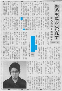 皆さんへのお知らせが大変遅くなりまして、申し訳なく思っております。 12月9日付の三陸新報に「海の男にあこがれて9」が掲載されました! 今回はシリーズ初の地元の青年! 彼は「南三陸町」出身でありますが、隣町なので地元のような感覚であります。(少し強引・笑) 宮城県内の水産高校を卒業と同時に遠洋マグロ延縄漁船の世界にエンジニアとして飛び込んできた熱き青年だ! さっそく紹介していきましょう!! 私は小学生の頃から母の実家の養殖業を手伝ってきました。 それで海が好きになり、高校は水産高校...