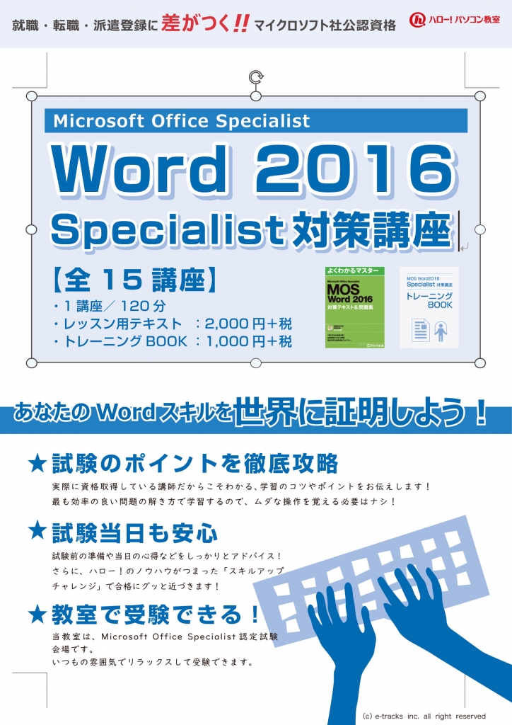 JUGEMテーマ:転職活動 こんにちは♪ アリオ鷲宮2階にある ハロー!パソコン教室イトーヨーカドー鷲宮校 インストラクターの北村です。 今回はハロー!パソコン教室の新しい講座コースをご紹介いたします。 その名も 「自宅で見放題MOS資格割コース」 です!! なんと、このコースではハロー!パソコン教室の映像授業が 自宅のパソコンやスマホ・タブレットで受けられてしまうんです! 「MOS」とは、正式名称は 「Microsoft Office Specialist(マイクロソ...