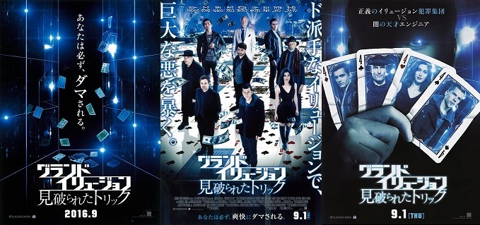 勢いで前売り券を買ってしまっていたグランド・イリュージョン 見破られたトリックを鑑賞。 アトラス(ジェシー・アイゼンバーグ)がリーダーのマジシャン集団、フォー・ホースメン。イリュージョンショーを繰り広げては不正に搾取された金を奪取してきた彼らが、再び出現し注目を浴びる。 しかし、新たなショーでハイテク企業の不正を暴こうとするが、何者かによってイリュージョンは失敗に終わる。その裏に、ウォルター(ダニエル・ラドクリフ)という天才ハイテクエンジニアの存在があった。 この「グランド・イリュージョ...
