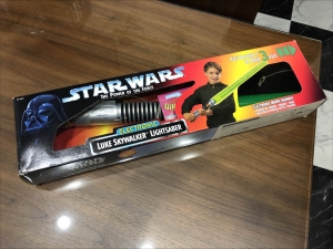 天気が良いけど「自主自粛」継続中の@おざさです。 ということで。 今回のSWグッズ集は・・・ Kenner LUKE SKYWALKER LIGHTSABER ケナー社 ルーク・スカイウォーカー ライトセーバー です。 遠い昔 今はなき東区新宮のトイザらスで・・・ 「クリアランス」で、数百円で購入したものです(笑)。 電池を入れて光らせて、ブンブン振って遊ぶライトセーバーです。 うら。どうやら音が出るようですね。 試しにマグライトの電池で試そうと思ったら・・・なんと単2乾電池! 単3乾電池で...