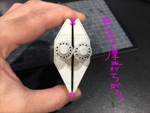 だいぶ寒くなってきました、@おざさです。 ということで。 少しドタバタしてて制作から離れていました。 そのおかげで見えなかった部分が見えてきました。 今回も本体上面のツインレーザー砲の後部台座の細かい修正です。 この部分、左右で厚みが違います(汗) 細いプラバンを接着、完全に乾くまで数日置き・・・ 荒削りですが左右の厚みが揃いました。 さて酒でも呑みながら削りましょう。 あ、また削りすぎないようにしないとネ(笑)。 久し振りなので...