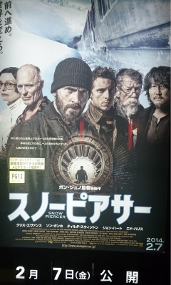 JUGEMテーマ:SF映画 一般 2014年、人類は地球温暖化の為に人口冷却物質「CW−7」を大気圏へ散布する。しかし、地球は氷河期に突入してしまう。そこで「スノーピアサー」という列車に乗った者だけが生き残ることができた。それから17年が経ち、その列車の中では、人類は前方車両に富裕層がいて、最後尾に貧困層がいた。その最後尾車両にいるカーティス(クリス・エヴァンス)とエドガー(ジェイミー・ベル)は、前方車両へ侵入することを狙っていた。そして、それを実行する時が来た。そこで始めに監獄セクションへと向かい、列車のセキュリティに詳しく、各車両の扉を開...
