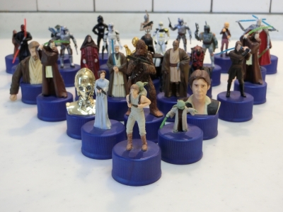 もう数年前のことですが、 大人買いして集めた スターウォーズのペットボトルのキャップです。 並べてみました。 名づけて、STW48! センターはもちろん大好きなルークです! 三人組のガンダム隊も、特別出演。