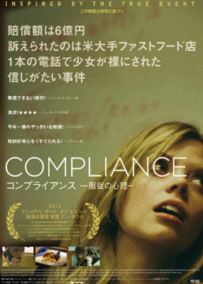 JUGEMテーマ:サスペンス映画全般「コンプラインス 服従の心理」原題:COMPLIANCE監督:クレイグ・ゾベル2012年 アメリカ映画 90分キャスト:アン・ダウド ドリーマ・ウォーカー パット・ヒーリー ビル・キャンプファストフード店に突然警官を名乗る男から電話がかかり、従業員ベッキーが客の財布から金を盗んだという話をされる。電話に出た店長サンドラは、その警官に言われるまま、ベッキーを調べ始めるが、それは次第にエスカレートしていき...。<お勧め星>☆☆ イライラします。しかしいか...