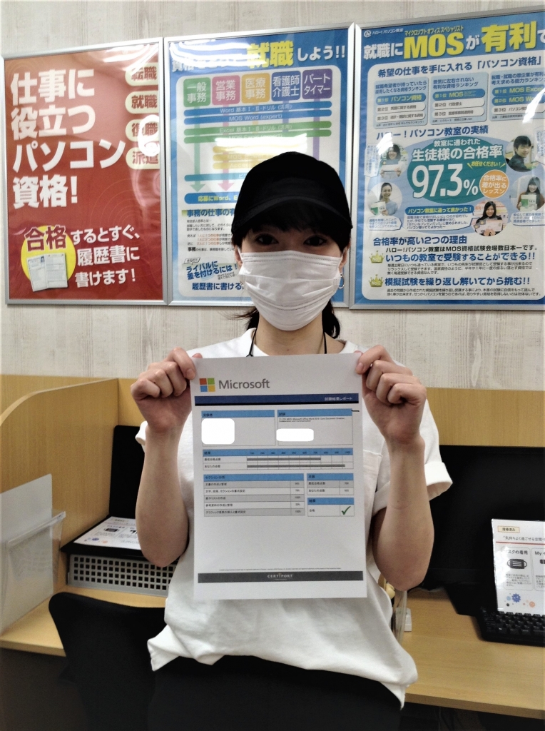 JUGEMテーマ:就職活動 こんにちは! JR総武線「幕張駅」から徒歩10分/京成線「幕張駅」 徒歩5分の ハロー!パソコン教室 イトーヨーカドー幕張校 教室インストラクター永野です。 先週に引き続き、またまたMOS合格者のご報告です! 皆様、本当に頑張っていらっしゃいます! ☆合格者☆ ーY・Sさん ★受験した種類★ −MOS Excel2016 Specialist ★資格を取ろうと思った理由やきっかけを教えてください★ −就職の為  ...
