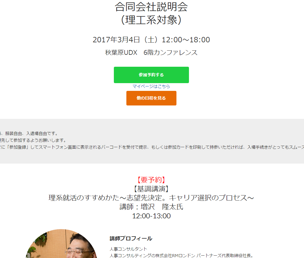 東北大学、日本大学生物資源科学部、東京理科大学など、特定の大学生向けの講座に登壇が続きましたが、いよいよ次はオープンセミナー、誰でも参加できる講座を行います。 2017年3月4日(土)12:00 秋葉原UDX 6階カンファレンス 大学生協主催 合同会社説明会 (理工系対象)、 基調講演「理系就活のすすめかた〜志望先決定。キャリア選択のプロセス〜」 講師:増沢 隆太氏 http://www.withnavi.org/job/gousetsu/20170304.html 「キャリア選択プロセス」とありますように、当日合同説明会を10...