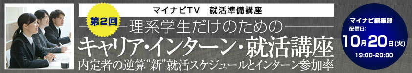 10月20日(火)19:00からのマイナビWebセミナー 【第2回】理系学生だけのためのキャリア・インターン・就活講座〜内定者の逆算“新”就活スケジュールとインターン参加率〜 に、代表・増沢隆太が、メイン出演者として登場いたします。 公開されていない当日の中身を少しだけ・・・・ 「理系だけのため」って? 「理系の特質」を上手に利用 理系の最大の「弱み」とは? 理系就活あるある・・・・ 等、盛りだくさんの1時間。チャット機能で質問もできるそうです。 理系就活指導の第一人者・増沢隆太の話が、...
