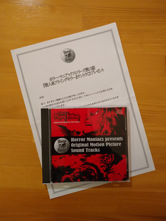 ホラー・マニアックスシリーズ第12期の応募者全員プレゼント『殺人魚フライングキラー』のサントラCDが届きました。 本当このサントラCDプレゼントは素晴らしい企画だと思います。 これまでにTシャツやビジュアルポスターなどのプレゼントがあってそれも嬉しいですが、やっぱりサントラCDが一番嬉しいかも。 まあCD貰うためにはその分ソフトを買わなきゃいけないってことだけど、ラインナップ見ればどれも欲しいタイトルばかり。 これからもホラー・マニアックスシリーズのライ...