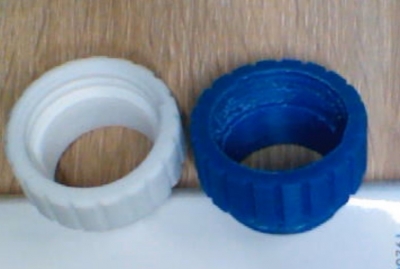 JUGEMテーマ:製作屋の裏話 仕事が無く暇だったので、練習のつもりでペットボトルの蓋をプリントして見た。 ネジを合わせるのが難しい。 何度かプリントして修正をしていってうまくいった。 液体も漏れない、この後どうしよう??