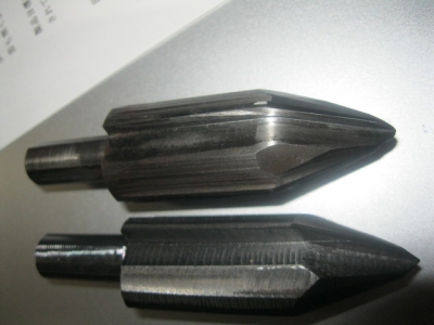 JUGEMテーマ:製作屋の裏話 塩ビ管に穴を開けるキリを作ってほしいと依頼があった。 手作りタップがうまくいったことの調子に乗ってキリの製作を受けてしまった。 前に誰かが製作したサンプルと同じに作るよう頼まれた。 計測をして、図面を書き製作しt納品したらバリが強いので何とかならないかとの話、 テストもせずに納品したこともあり、塩ビパイプを支給してもらって修正をしたが、刃を立てすぎて穴が多角形になるは 砥石で刃を殺したらバリが出るわでどうしていいかわからずギブアップ、とりあえずある程度...
