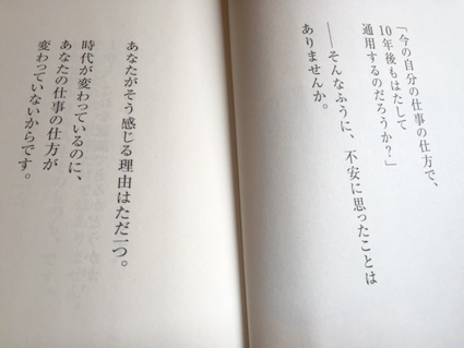 JUGEMテーマ:お仕事「今の自分の仕事の仕方で、 10年後もはたして 通用するのだろうか?」 年末にふと手にとった一冊の本のワンセンテンスに、私の目は釘付けになった。仕事の仕方かぁ。。。近い将来、人工知能が台頭してくるようになると話は別だが、おそらく私の仕事の基本はアナログなので、企画、編集、取材についてはどんなに時代が変化しても、そうそう変わることはないだろう。だが、アウトプットする媒体についてはこれまでもどんどん変わってきた。現に、既存の雑誌数も、発行部数も、1ページに対するギャラも、この20年...