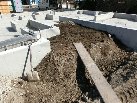 今日は住宅基礎内部立ち上がりの生コン打設です。 この打設で9割の作業が終わった事になります。 午前10時にコンクリートポンプ車とコンクリートミキサー車が到着し打設の準備をします。 打設開始です。 振動を加えながら生コンを打設していきます。 打設が完了し天端にレベラーを流してます。 最後に保湿養生をして2回目の生コン打設は終わりです。 午後2時からは基礎外周の埋め戻しをしました。 基礎天端から400mm下がった位置まで埋め戻します。 油圧ショベルが入れる場所は作業が早いです。 狭い場...