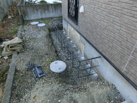 今日はスロープ工事です。 車椅子でも上り下りがスムーズに出来るスロープを作ります。 施工前の写真です。 ハンマードリルで土間と階段のコンクリートをはつります。 型枠を設置してワイヤーメッシュを敷き詰めて生コンを打設しました。 JUGEMテーマ:工事 168