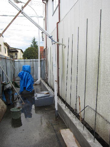 今日もブロック塀の解体・新設工事です。 【場所 】栃木県那須町 ブロック塀の解体が完了し瓦礫の撤去も終わりました。 コンクリートの基礎を作る為にケミカルアンカーで鉄筋を固定し、 配筋をしていきます(西側) 東側も配筋して型枠(木枠)を組む作業に入りました。 JUGEMテーマ:工事 168