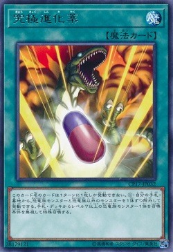 JUGEMテーマ:遊戯王 究極進化薬 CP17-JP032 通常魔法 このカード名のカードは1ターンに1枚しか発動できない。 (1):自分の手札・墓地から、恐竜族モンスターと恐竜族以外のモンスターを1体ずつ除外して発動できる。 手札・デッキからレベル7以上の恐竜族モンスター1体を召喚条件を無視して特殊召喚する。
