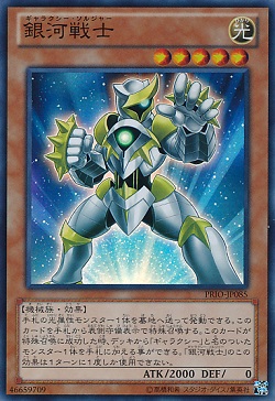 JUGEMテーマ:遊戯王 プライマル・オリジンで登場した銀河戦士(ギャラクシー・ソルジャー)についてです。 効果モンスター 星5/光属性/機械族/攻2000/守 0 「銀河戦士」の(2)の効果は1ターンに1度しか使用できない。 (1):このカード以外の手札の光属性モンスター1体を墓地へ送って発動できる。 このカードを手札から守備表示で特殊召喚する。 (2):このカードが特殊召喚に成功した時に発動できる。 デッキから「ギャラクシー」モンスター1体を手札に加える。