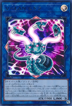JUGEMテーマ:遊戯王 V-LAN ヒドラ VJMP-JP133 リンク・効果モンスター リンク3/光属性/サイバース族/攻1900 【リンクマーカー:上/左/下】 トークン以外のモンスター2体以上 このカード名の(2)の効果は1ターンに1度しか使用できない。 (1):このカードの攻撃力はこのカードと相互リンクしているモンスターの数×300アップする。 (2):このカードの相互リンク先のリンク3以下のモンスター1体を対象として発動できる。 そのモンスターをリリースし、そのリンクマーカーの数だけ自分フィ...