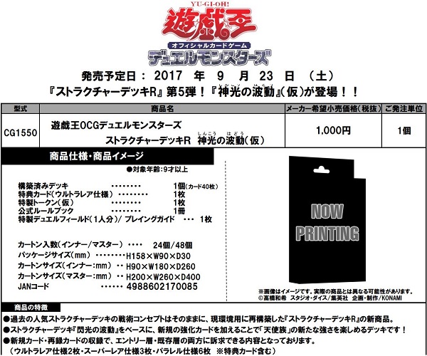 JUGEMテーマ:遊戯王 ストラクチャーデッキR-神光の波動-発売情報 <商品詳細> 発売日:2017年9月23日 定価:税込1080円