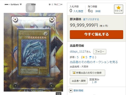 JUGEMテーマ:遊戯王 ヤフーオークションにてオリジナルパックが約1億円で出品されています。 気になったので調べてみました。