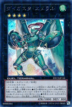 JUGEMテーマ:遊戯王 デュエルターミナル13弾で登場したダイガスタ・エメラルについてです。 エクシーズ・効果モンスター ランク4/風属性/岩石族/攻1800/守 800 レベル4モンスター×2 1ターンに1度、このカードのエクシーズ素材を1つ取り除き、 以下の効果から1つを選択して発動できる。 ●自分の墓地のモンスター3体を選択して発動できる。 選択したモンスター3体をデッキに加えてシャッフルする。 その後、デッキからカードを1枚ドローする。 ●効果モンスター以外の 自分の墓地の...