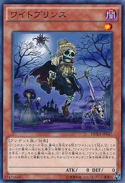 JUGEMテーマ:遊戯王 ザ・デュエリスト・アドベント収録のワイトプリンスについてです。 効果モンスター 星1/闇属性/アンデット族/攻 0/守 0 (1):このカードのカード名は、墓地に存在する限り「ワイト」として扱う。 (2):このカードが墓地へ送られた場合に発動できる。 「ワイト」「ワイト夫人」1体ずつを手札・デッキから墓地へ送る。 (3):自分の墓地から、「ワイト」2体とこのカードを除外して発動できる。 デッキから「ワイトキング」1体を特殊召喚する。 ...