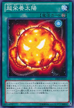 JUGEMテーマ:遊戯王 クリムゾン・クライシスで登場した超栄養太陽についてです。 永続魔法 自分フィールド上のレベル2以下の植物族モンスター1体をリリースして発動できる。 リリースしたモンスターのレベル+3以下のレベルを持つ植物族モンスター1体を、 手札・デッキから特殊召喚する。 このカードがフィールド上から離れた時、そのモンスターを破壊する。 そのモンスターがフィールド上から離れた時、このカードを破壊する。