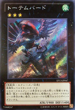 JUGEMテーマ:遊戯王 エクストラパック-ソード・オブ・ナイツ-収録のトーテムバードについてです。 エクシーズ・効果モンスター ランク3/風属性/鳥獣族/攻1900/守1400 風属性レベル3モンスター×2 このカードのエクシーズ素材を2つ取り除いて発動できる。 魔法・罠カードの発動を無効にし破壊する。 このカードのエクシーズ素材が無い場合、 このカードの攻撃力は300ポイントダウンする。