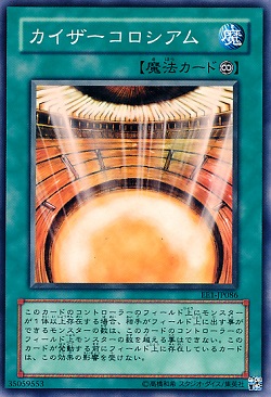 JUGEMテーマ:遊戯王 カイザーコロシアムについてです。 永続魔法 このカードのコントローラーのフィールド上にモンスターが1体以上存在する場合、 相手がフィールド上に出す事ができるモンスターの数は、 このカードのコントローラーのフィールド上モンスターの数を越える事はできない。 このカードが発動する前にフィールド上に存在しているカードは、 この効果の影響を受けない。