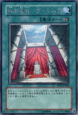 JUGEMテーマ:遊戯王 プレミアムパック11で登場した神の居城-ヴァルハラについてです。 永続魔法 (1):1ターンに1度、自分メインフェイズにこの効果を発動できる。 手札から天使族モンスター1体を特殊召喚する。 この効果は自分フィールドにモンスターが存在しない場合に発動と処理ができる。