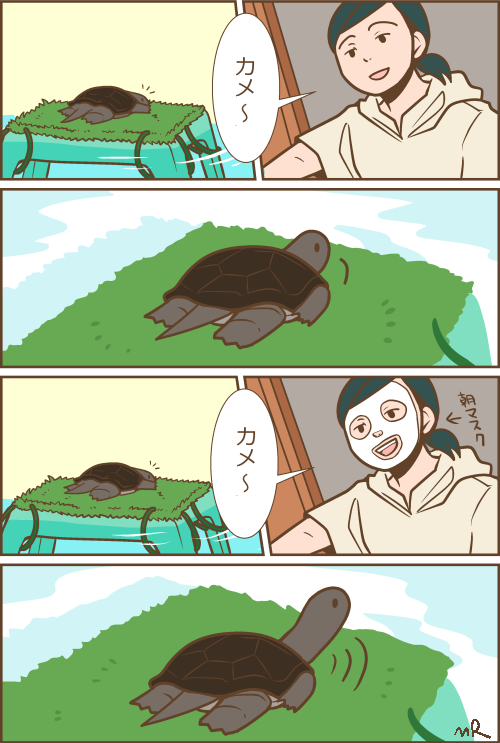 2〜3日で慣れて反応が薄くなりますが、忘れた頃にやるとまた大きめのリアクションをくれます。 (うちのカメは割と黒化気味なので、配色をマイナーチェンジ) JUGEMテーマ:オリジナル4コマ・マンガ JUGEMテーマ:クサガメ JUGEMテーマ:オリジナル4コマ・マンガ