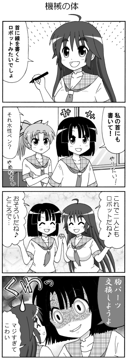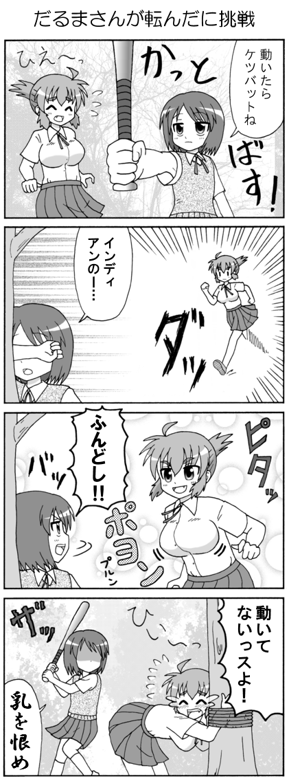 ほのぼの4コママンガ、始めました。 ☆★<よいこのみんなへまめちしき>★☆ 「秋なすは嫁に喰わすな」ということわざがあるよ。 (1)秋なすはおいしいけどカラダが冷えるから、というおヨメさんへのやさしさ。 (2)秋なすはタネが少ないので、子宝に恵まれるように(赤ちゃんが産まれるように) あえておヨメさんには食べさせないという縁起かつぎ。 (3)おいしすぎるからおヨメさんにはあげない!というイジワル。 いろんな説があるけど...