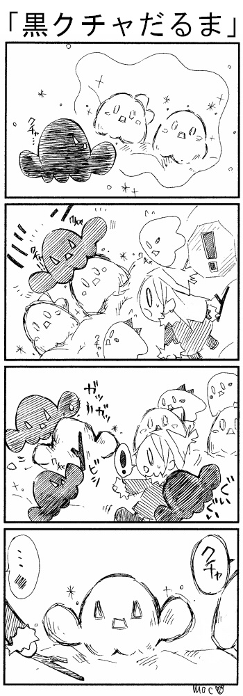 こんにちは、mocoです☆ はい!今日もクチャクチャ〜 そらが作ったクチャだるまを、黒クチャは宇宙で見ています。 クチャ★ JUGEMテーマ:オリジナル4コマ・マンガ