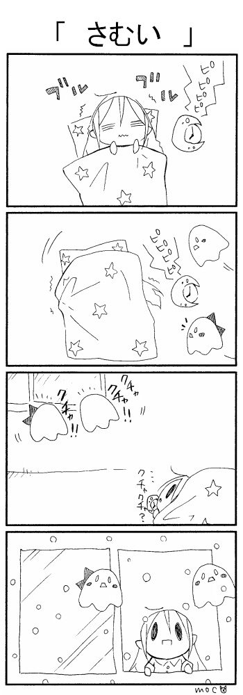 こんにちは、mocoです☆ はい!今日もクチャクチャ〜 寒い日の朝。布団から出られないそらが… JUGEMテーマ:オリジナル4コマ・マンガ