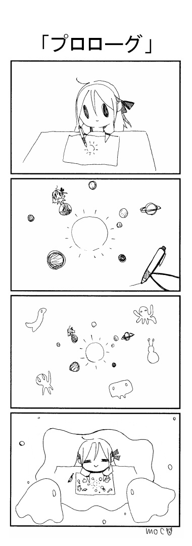 こんにちは、mocoです☆ オリジナル4コママンガ描きはじめました。宇宙人クチャクチャと女の子そらの、未知との遭遇4コマ漫画です。 彼らの日常をほのぼの描いていきます。基本毎日更新☆よろしくです☆ ☆☆☆☆☆☆☆☆☆☆☆☆☆☆☆☆☆☆☆☆☆☆☆☆☆☆☆☆☆☆☆☆ 物語のはじまり。 クチャクチャとそらが出会うきっかけとなる0話です。 クチャクチャ〜☆ JUGEMテーマ:オリジナル4コマ・マンガ