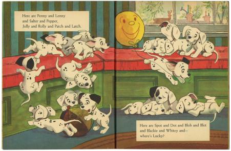 JUGEMテーマ:ディズニー=ピクサー 先日の「こいぬのラッキー(Lucky Puppy)」のおまけです。 ラッキーたちは15匹きょうだい(Tote はこどもの頃、101匹全員がきょうだいだと思っていた…)。全員そろっているのが上の画像です。 この子たち、みんなの名前ってご存知ですか? ペニー、レニー、ソルト、ペッパー、ジョリー、ロリー、パッチ、ラッチ、スポット、ドット、ブロブ、ブロット、ブラッキー、ホワイティーです。 だれがどれかわからない…。 「101匹わんちゃん...