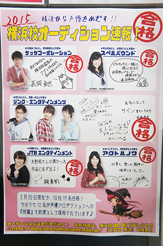 JUGEMテーマ:声優全般 こんにちは!声優タレントコース2年午前クラス、おゆきこと渡邉尚之です! 同じく2年午前クラス、もちこと山崎友希です! お)さてさて…怒涛の勢いで来てますね。 オーディションのラッシュ!!複数受けてる人はやっぱり大変ですね〜。 教室には早速こんなものが! も)これは!!!さ、流石!!仕事が早い!! お)ここに載ってるメンバーが、もう既に「ここに行く!」と決めた人達ですね。 も)いやはや、本当にお疲れ様でした(^o^) このメンバーに、やっと落ち着...