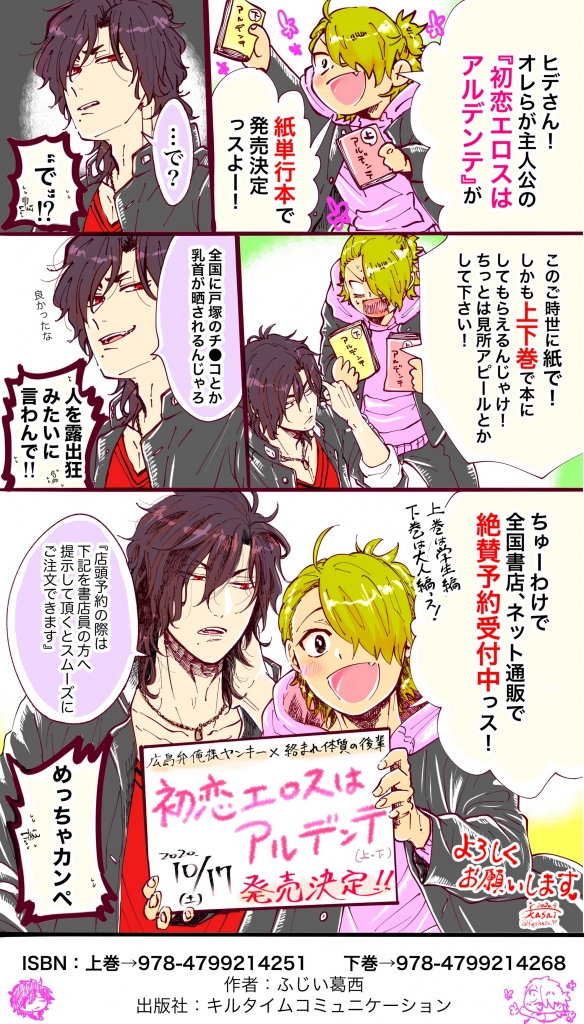 今日は嬉しいお知らせに参りました…! いつも応援くださる読者さんのお力とお声のおかげで、 BLfrancで連載していた、 『初恋エロスはアルデンテ』の 紙書籍化が決定しました…!!! 2020/10/17(土)、全国書店で上下巻・同時発売です!!!!!! やったあ゛あ゛あ゛あああ嬉じい゛い゛いいいいい!!!!!!!😂😂😂😂 ...