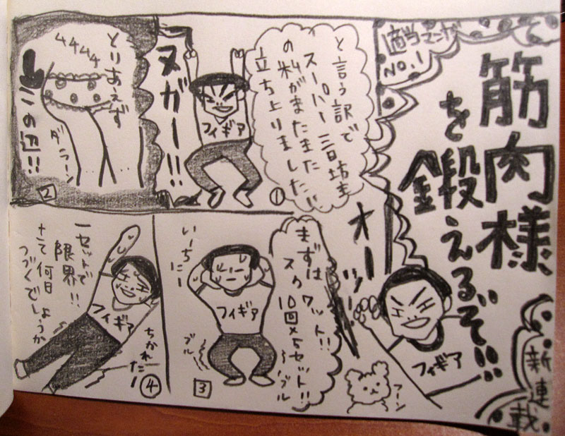 え〜運動と無縁のワタクシでございますが、一部腰痛がひどお御座んして…下半身のたるみも容赦ない感じでござーまして…それもこれもありまして…時間もごぜーまして…なんと!筋トレでもしてみようかいと思い立ちまして候!!画期的!画期的!本当、時間があると色々やってみようかと思う不思議でございます。えぇこっちゃね〜JUGEMテーマ:日常漫画