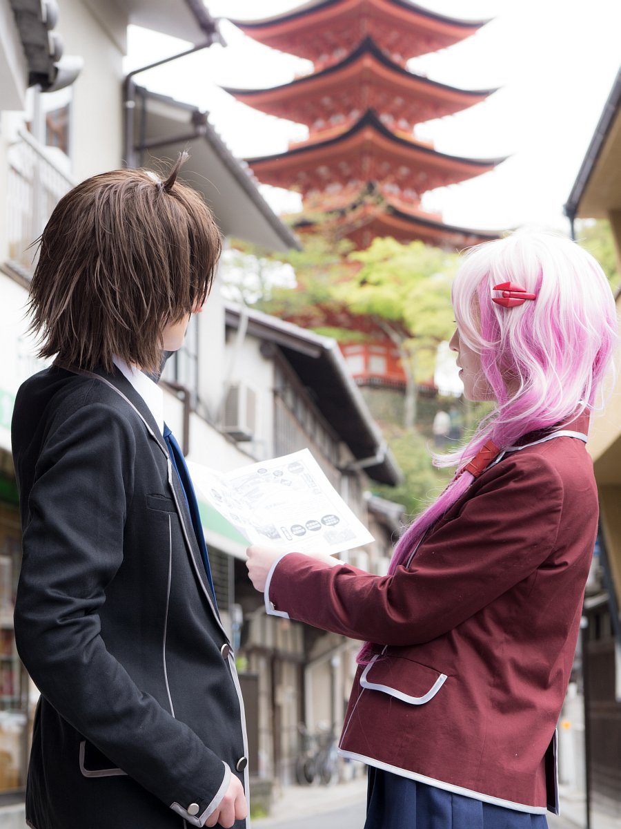気が付いたら5月です。 早いですね。 大型連休とか言われてますが、普通に暦通りでした。 暦通りっていうかむしろそれ以下っていうか… やっと、ゆっくりお休みなので 今更ながら4月の宮島inコスカレードの写真でも。 前日まですごく暖かかったのに なぜかこの週末だけすんげぇ寒かったです。 前半は黒藤零夜さんと天王洲第一高校の制服併せ! 冬服だとちょっと暑いかな?って話してたんですが 冬服でもちょっと寒いくらいでした。 商店街から一本入った裏路地がコスプレ可能エリアでした。 五重塔...
