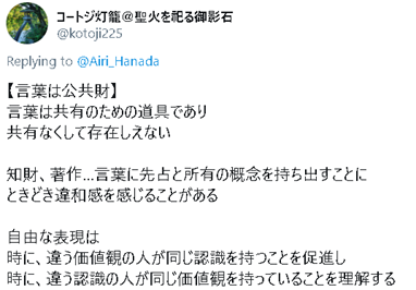 JUGEMテーマ:こころ JUGEMテーマ:自己実現 おはようございます! 本日も、ご訪問ありがとうございます。 今回は、「続・リプ付けの効用」です。 先日、私がよくリプをする相手の1人である、先日紹介させていただいたタマキさん http://kotoji225.jugem.jp/?eid=270 から、こんな返事をいただきました。 「コートジさん これリプのレベルじゃなく ツィートする内容かと」 (関連リプ) https://twitter.com/kotoji225/status/13028424...