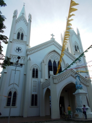 【写真−1】 飛行機は午後発なので、その時間を利用してトライシクルに乗って大聖堂へ行く。写真−1はその正面で、現在の建物は1955年に竣工した。日本流の初詣感覚がカトリックにもあるのか、早朝にもかかわらず信者が次々とやって来る。 【写真−2】 大聖堂入り口から正面中を写したのが写真−2。外観の塔の高さから比べると中はそれ程広くない。古い教会だと大きな木製のドアがあり厳かな印象を与えるが、ここは一見アールヌーボー風の味を感じさせる。 【写真−3...