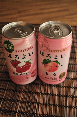 スーパーでほろよいの限定練乳いちごサワーをかごに入れたら 夫はももを入れました ピンクかぶり…(笑) 練乳いちごサワーはなつかしい味でした