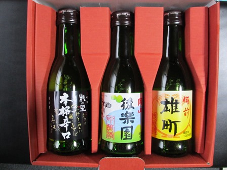 JUGEMテーマ:お酒最近急ぎの記事がたくさんあったので、お酒の記事が後回しになっていました。岡山・和歌山・鳥取のお酒をまとめてアップします。まずは、岡山のお酒・3点セットでも、もう飲んでしまったので、味を忘れました(笑)が、確かに美味しかった・・これは和歌山のお酒。これも忘れました(笑)。でも、美味しかったという記憶が残っています。今、飲んでいるのが鳥取のお酒「元帥 原酒」搾ったまま、無濾過の原酒です。アルコール度20度・・でも美味しい。口当たりが良くて、いくらでも飲めそう・・(笑)私が飲んだ分が減って...